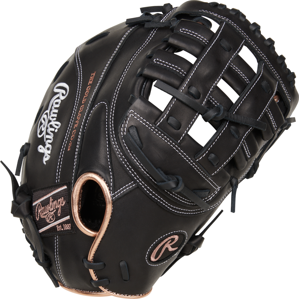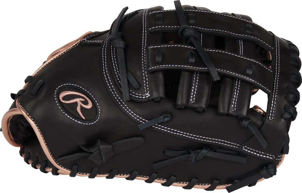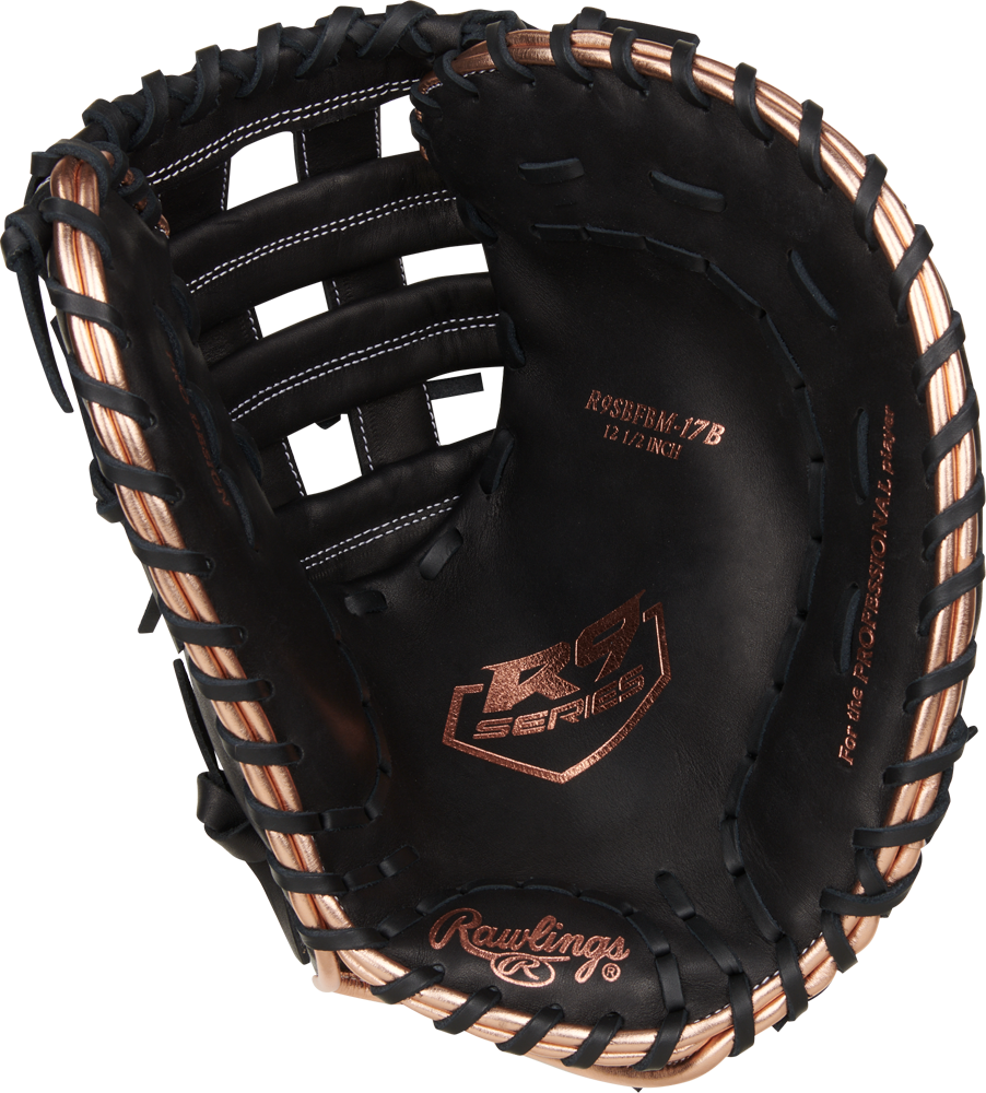 Eine höherwertige Option für First Base Spielerinnen stellt Rawlings mit dem R9 R9SBFBM-17B Fastpitch Mitt vor. Vorgeöltes Full Grain Rindsleder sorgt für kurze Einspielzeiten und solide Haltbarkeit. Die Gloves der Serie sind mit schmaleren Handeinschüben und reduziertem Fingersegmentabstand auf die Bedürfnise von weiblichen Spielern zugeschnitten. Die Handöffnung kann zusätzlich über Zugbänder an die individuelle Handgröße angepasst werden. Die Fangfläche des 12 1/2“ Mitts wird durch ein tiefes H-Web, ein innen liegendes Handflächenpolster sorgt für erweiterten Handschutz.