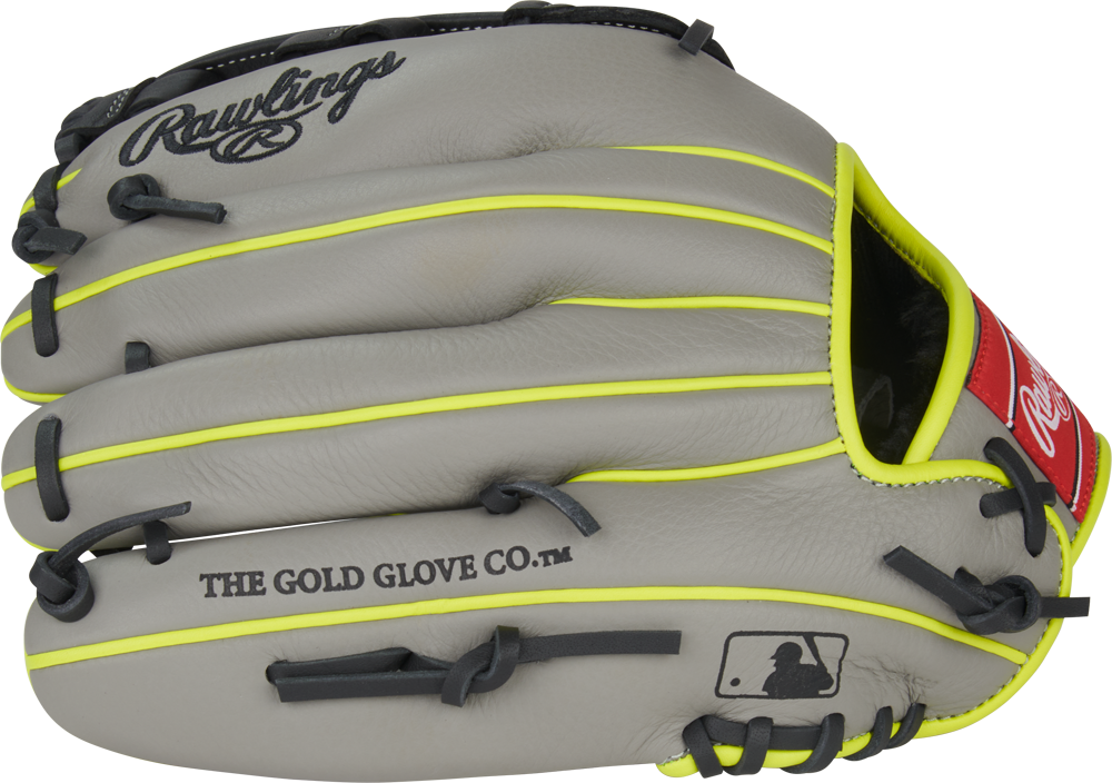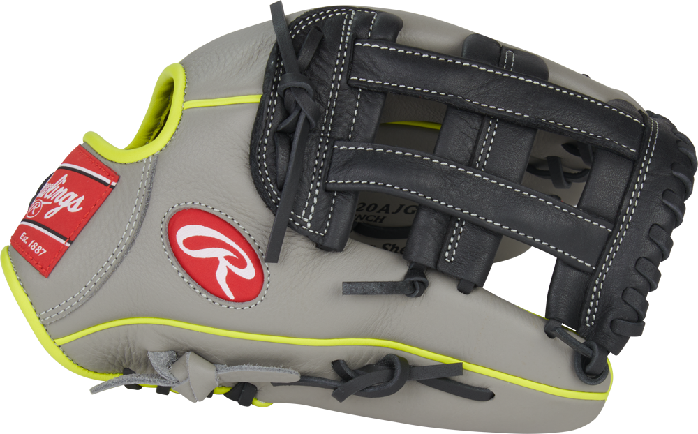Mit der Select Pro Lite Serie stellt Rawlings eine hochwertige Glove-Serie für Jugend-Spieler vor, die dem Einsteiger-Glove vom Spielniveau entwachsen sind, die aber aufgrund der geringeren Handgröße noch nicht auf eine Erwachsenenhandöffnungsgöße wechseln können. Die Select Pro Lite Gloves bieten einen soliden, vorgeölten Vollleder Glove (mit Einspielzeit), ein Handflächen- und Zeigefingerpolster sowie einen gepolsterten Handrückenbezug im Handschuhinneren für mehr Tragekomfort. Der 12“ lange SPL120AJG präsentiert sich im coolen „Aaron Judge“-Glove Look und verfügt über ein flexibles Pro H-Web und einen open back für einen entspannten Sitz an der Fanghand. Die Handöffnungsgröße fällt jugendspezifisch kleiner aus, die Abstände der Fingersegmente sind für eine bessere Passform und Handschuhkontrolle ebenfalls reduziert.