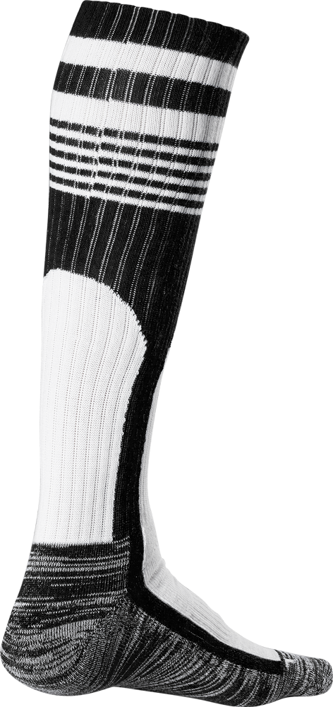 Atmungsaktive, knielange Throw Back Game Sock aus 93% Polyester, 6% Spandex und 1% Nylon. Farblich abgesetzte Fuß- und Archillespolsterung.