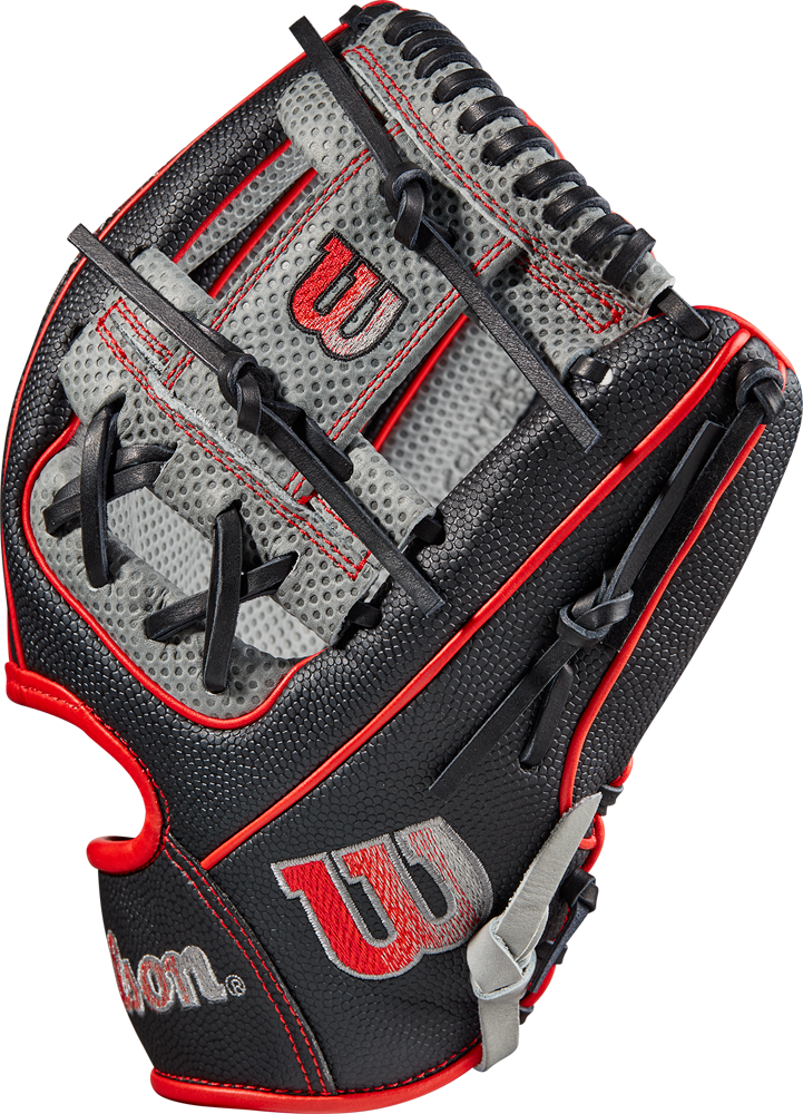 A2000 – what else is there to say. Made from Pro Stock Leather, these Gloves are up there with the best when it comes to quality and durability. Players that know this series know what to expect, for all first-timers a word of warning: these Gloves are so NOT game-ready and need extensive break-in. The A2000 WBW1009861175 SC1975 SS SuperSkin Spin Control offers an 11 3/4" length making it an ideal Infield Glove. The Glove features the new Spin Control, a dimpled texture in the glove that increases friction between ball and glove and helps increase ball control. The flexible Pro H-Web is there for you on linedrives and ground balls alike. Dual Welting, a double seam running the length of the finger slots, increases shape retention for a Glove that keeps its shape. A breathable Dri-Lex wrist lining helps to keep your hands dry when the heat is on. In addition, the Glove features a SuperSkin back. SuperSkin is a man-made synthetic material that is stronger and lighter than leather and repels water. An open back rounds out the A2000 WBW1009861175 SC1975 SS SuperSkin Spin Control.