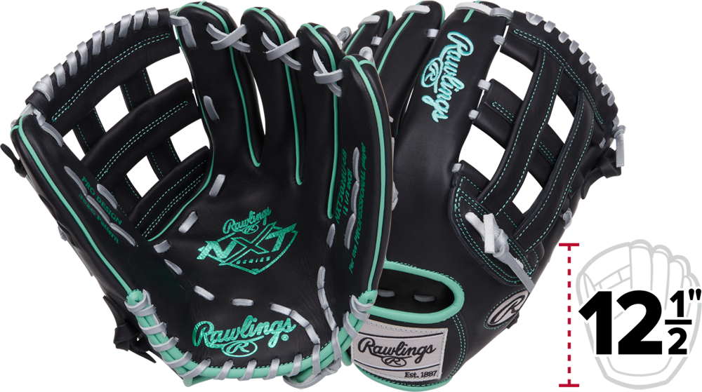 Made for the serious youth player that is looking for a high quality Glove that lasts, Rawlings introduces the NXT-Series. Inserted into the Rawlings Glove line-up between the Heart of the Hide Gloves and the R9 Series, these Gloves mean business and are loaded with features for the up-and-coming stars. The Pro-Soft Leather creates a durable shell for outstanding durability. The Contour Fit features of the Glove are tailored to the younger player and include a reduced wrist opening and a tapered Glove back, tighter and lower finger stalls for a more secure fit and increased Glove control and a padded thumb sleeve for increased hand protection. The NXT3028U-6B offers a 12 1/2" Glove length, making it the perfect partner for the Outfield. A Pro-H Web forms the pocket, the catching hand sits in an open back.