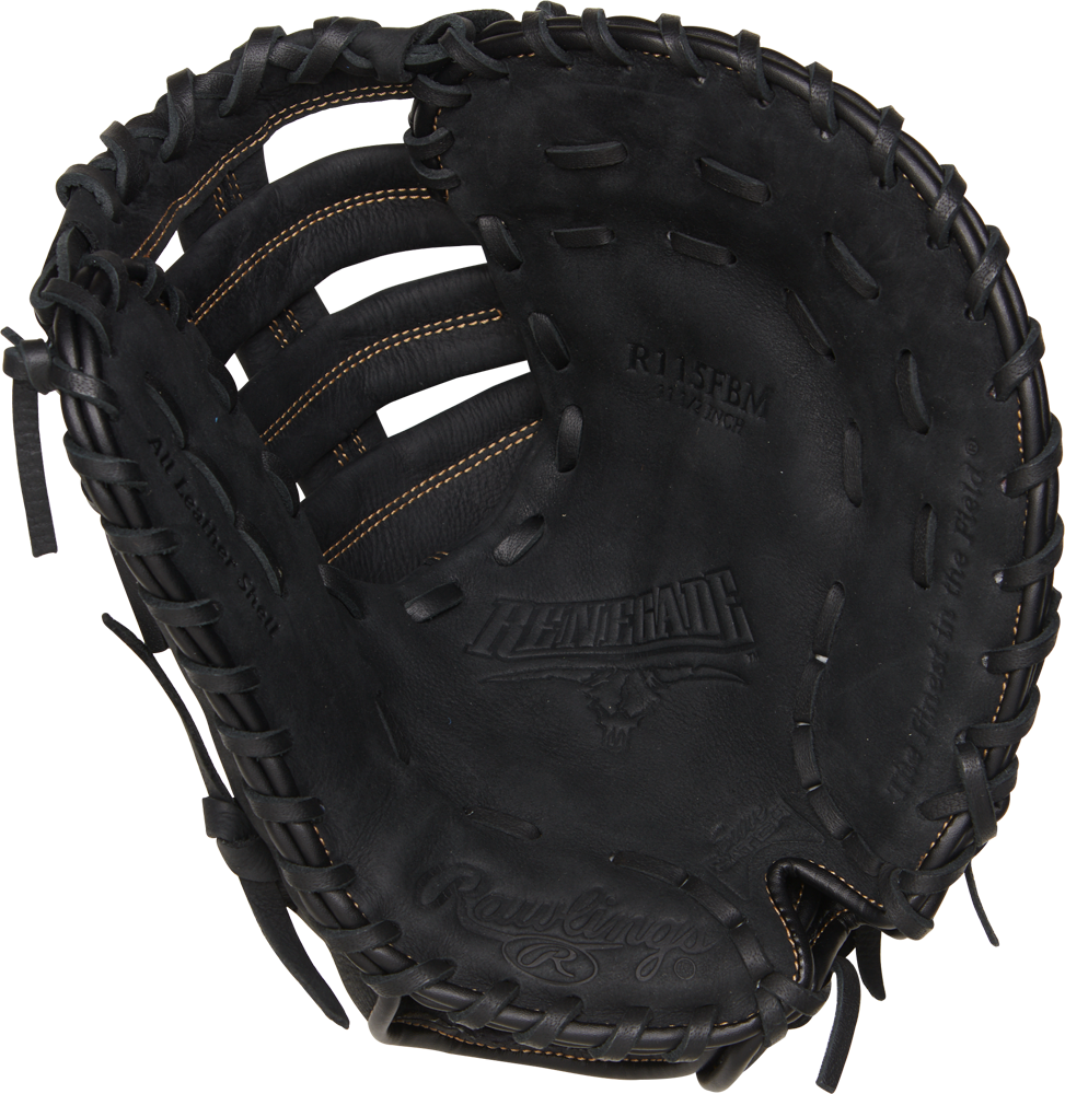Rawlings introduces the R115FBM Youth First Base Mitt, designed for the young player that is getting his first tries at first base. The Mitt offers an 11 1/2\" length that many players already know from their Fielding Glove – but with the benefits of a Mitt. The half moon cut increases the catching surface and makes it easier to “scoop” short throws at first base. Pre-oiled Full Grain Leather provides a durable frame, a sure catch notch reduced the hand strength required to squeeze the Mitt. The catching hand sits in an open back for maximum range of motion. An index- and palm pad provide extended hand protection.