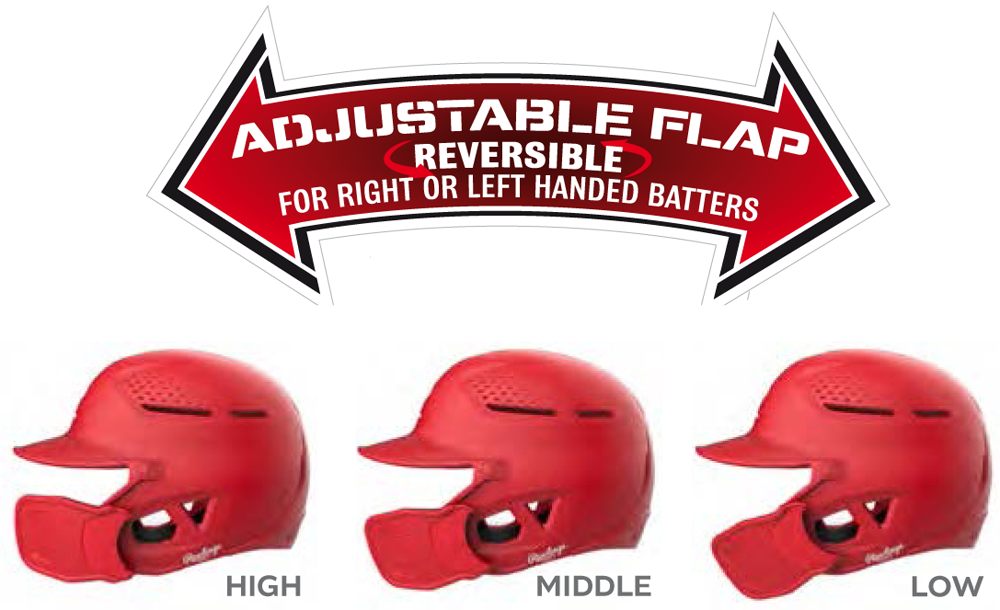 The Rawlings RX2REVADJ Batting Helmet Extension piece provides the batter with extra facial coverage without limiting visibility. The Extension can be installed on the right or on the left side of the Rawlings RX2-Series helmet and therefore fits for left- and right handed batters. The Extension can be attached in three different positions, “High”, “Middle” or “Low” to give the player individual coverage.