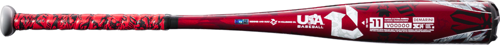X-14 – the name of this Alloy rings a bell. And as a matter of fact, DeMarini uses the same X-14 Alloy in the “The Goods” Bat series. So, what makes the Voodoo special, why have another bat with the same Alloy? The secret is in the weight distribution: while the “The Goods” Bats are clearly top-heavy and meant for the Power Hitters, the weight distribution of the Voodoo is amazingly balanced. The effect is of this evenly distributed weight is amazing, the bat feels as if it falls into the swing all by itself. And the X14-Alloy will do the rest…A classic 2 5/8” barrel with regular handle round out the new Voodoo One USA Baseball Senior League.