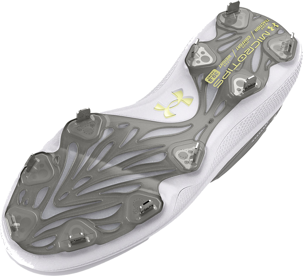 Low-cut Metal Cleat with fixed metal cleats on a TPU plate for maximum grip. The upper offers tough synthetic leather with TPU overlays in the heel and high-wear areas making the shoe very light and providing a “running shoe” feel. The full length charged foam sole provides cushioning, a Perfx Sockline a comfortable feel. A built-in toe drag plate offers increased durability.